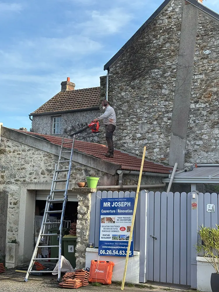 L’entreprise Mr Joseph a récemment réalisé des travaux de rénovation complète d’une toiture de 20 m² à Crespières (78121). Ces travaux comprenaient la dépose des anciens matériaux, la mise en décharge, ainsi que la fourniture et la pose de nouveaux éléments pour assurer une toiture durable et parfaitement étanche.